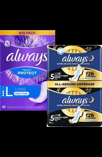 Always, flera sorter, gälle trosskydd 44-60 pack, jfr pris 0,78 3,35/st