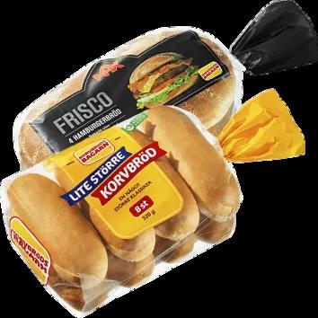 Korvbrödbagarn, 4-8 pack, gäller Double Sesam, Frisco, Lite större korvbröd, jfr-pris 67,75-68,59/kg