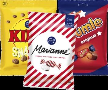 Fazer, 140-200g, flera sorter, i påse, jfr-pris 139,75-199,64/kg