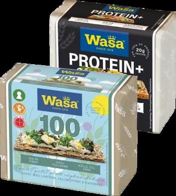 Wasa, 200-245g, gäller Tunn Vete, Celebrating 100, Protein+, jfr-pris 77,3594,75/kg