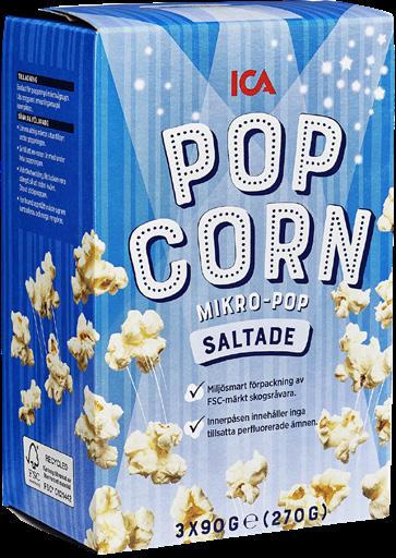 FÖR 2 20:Micropopcorn 3-pack ICA. 270g. Max 1 köp/hushåll. FÖR