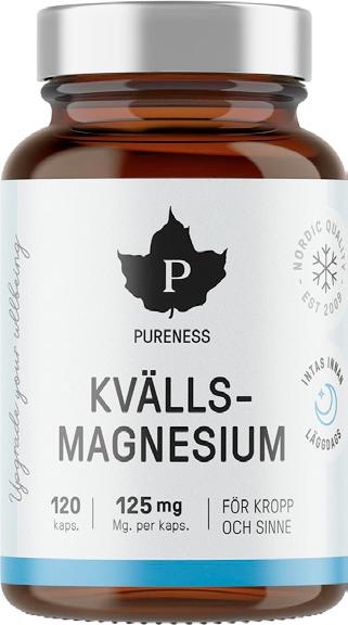 Kvällsmagnesium. Magvänlig form av magnesium med utvalda örtextrakt. Bidrar bland annat till normal nervoch muskelfunktion.
