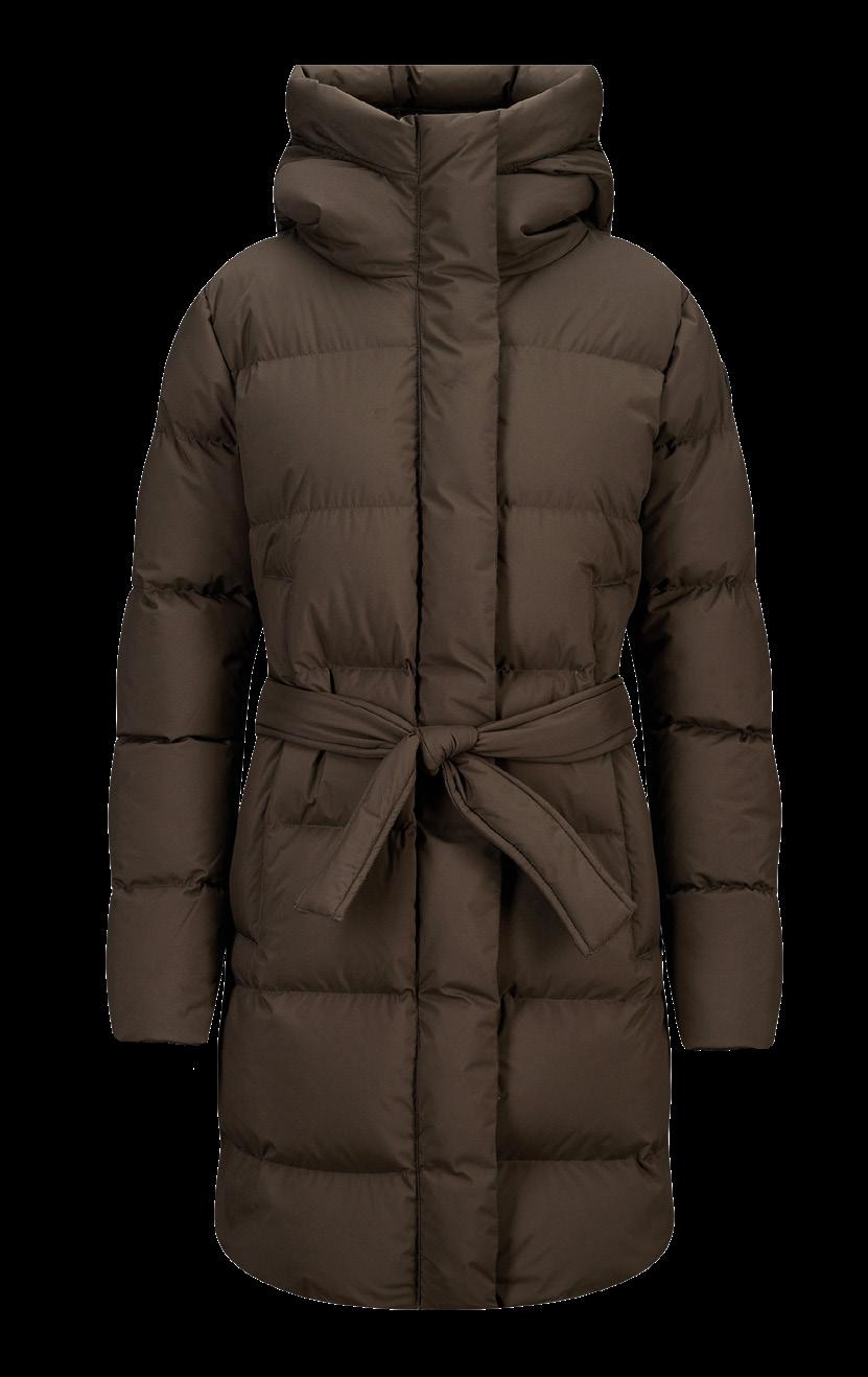 Dunjacka med feminin passform och avtagbart bälte från Monel.