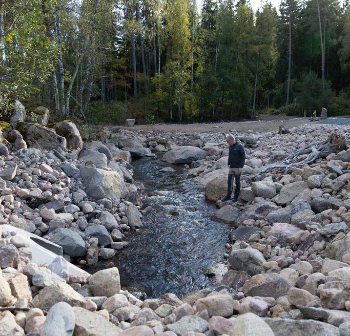 – Det här hindret har stoppat fisken i över ett sekel. Nu skapar vi helt nya förutsättningar för öring och andra vandrande arter, berättar Magnus Lundberg som hållit i projektet hos Tranås Energi.