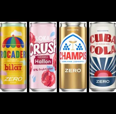 Loka, Trocadero, Champis, Cuba Cola, 33cl, flera sorter, gäller burk, jfr-pris 15,15/l +pant Lägsta 30-dagarspris 7,5-10,95/st