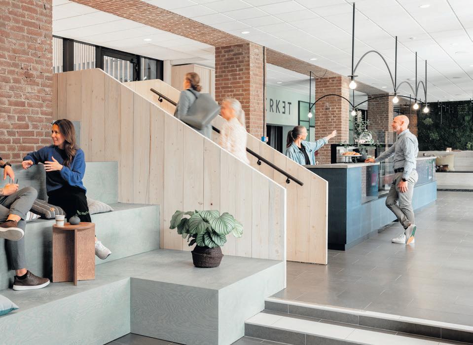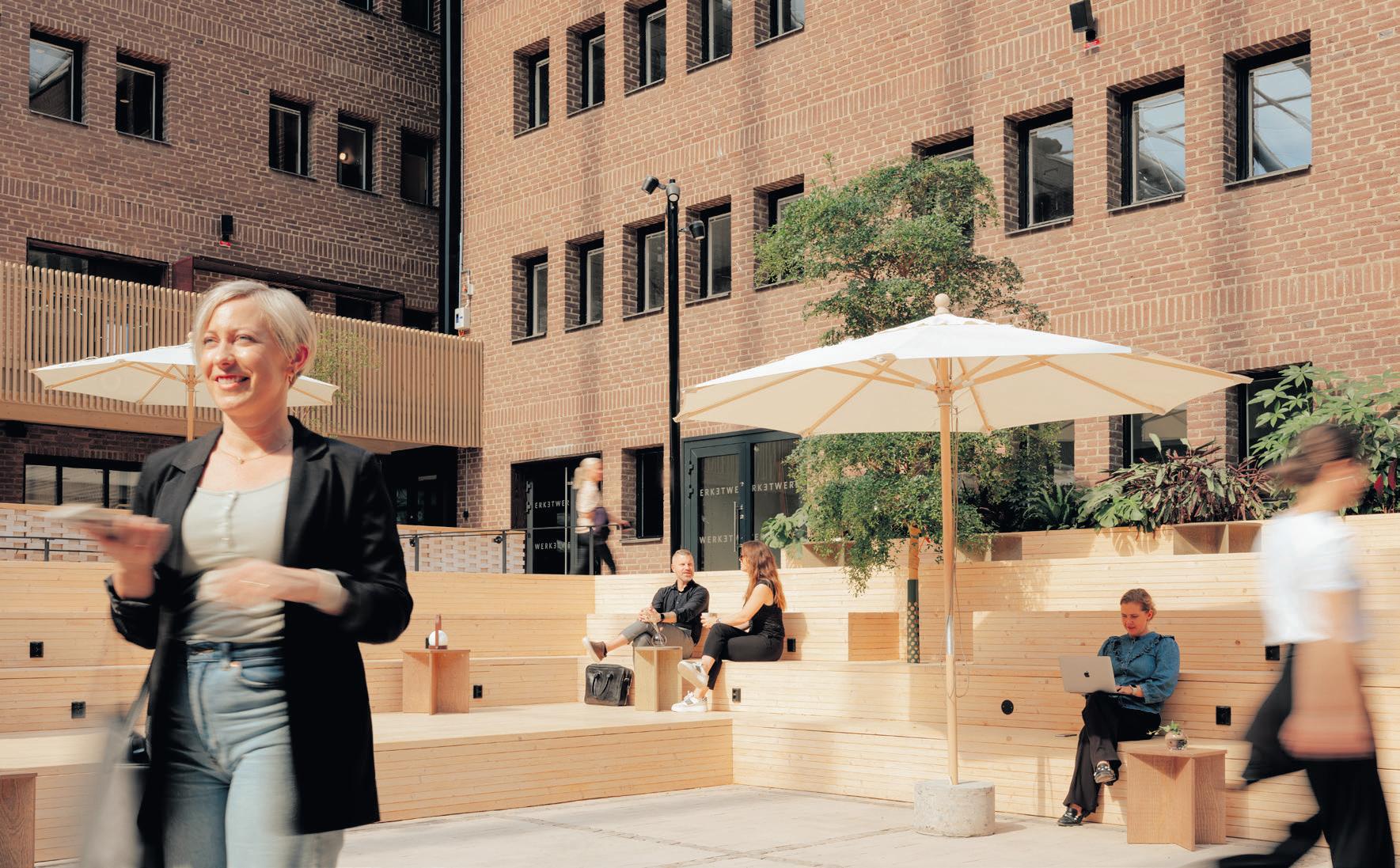 Hållbarhet kommer igen i alla delar I husets hjärta ligger den ljusa atriumgården, en naturlig mötesplats för människor i huset men även för dem som besöker restaurangen Carotte x Werket som ligger på bottenplan. Hållbarhetsfokuset återkommer även i restaurangen och caféets utbud.
