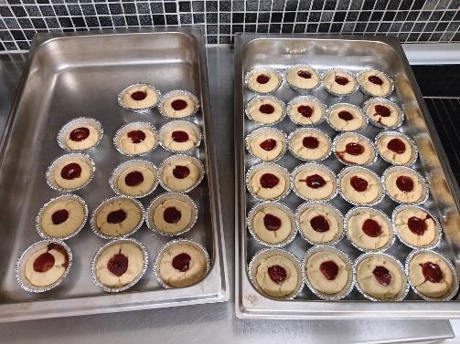 En härlig doft sprider sig snart i köket och en liten stund senare kommer nygräddade kakor ut ur ugnen som så småningom kommer att avnjutas. Under tiden som kakorna är i ugnen bjuds det på fika.