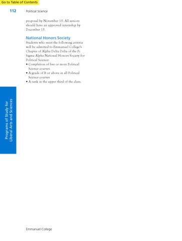 Students who meet the following criteria will be admitted to Emmanuel College’s Chapter of Alpha Delta Delta of the Pi Sigma Alpha National Honors Society for Political Science: • Completion of five or more Political Science courses • A grade of B or above in all Political Science courses • A rank in the upper third of the class.
