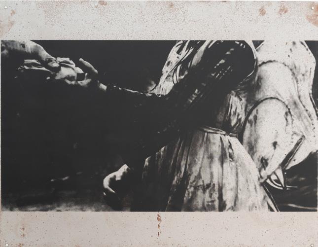 p. 100 Lily McRae, 2, 2025, casein, pastel and burn marks on canvas, 60 x 40 cm. Courtesy of the artist and Envy