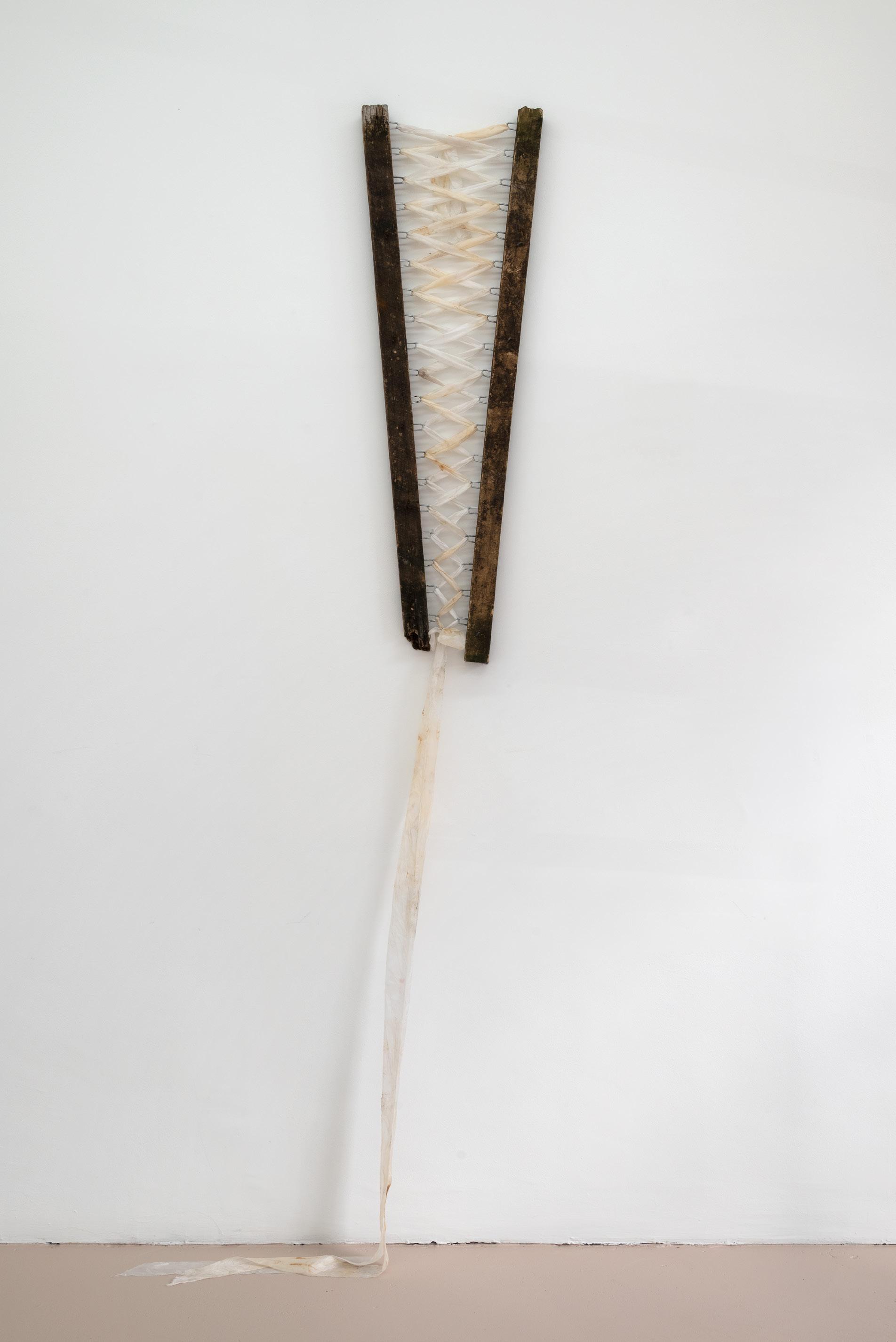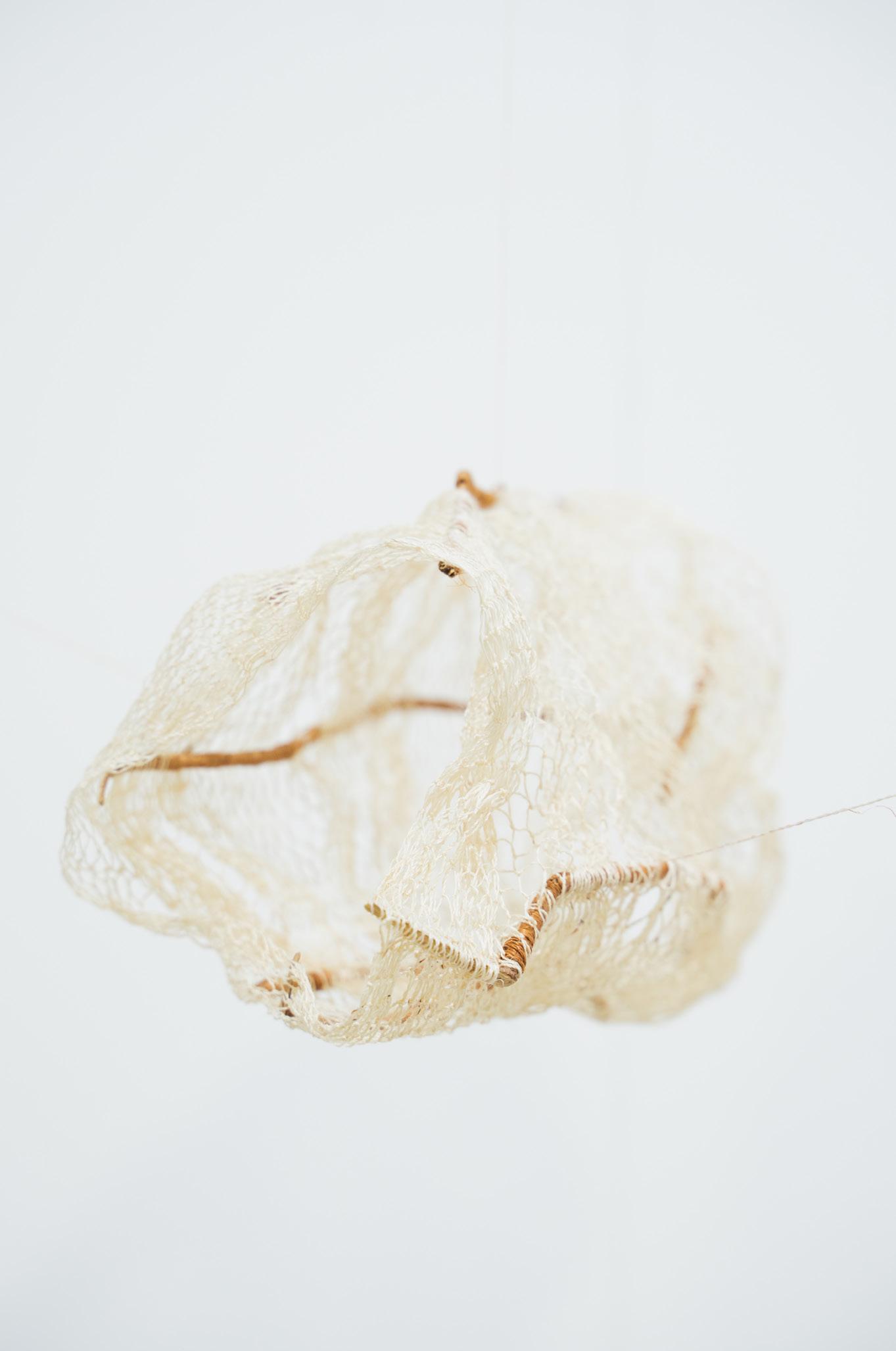 p. 93 Michelle Mayn, Untitled, 2024–2025, hand-stitched cotton gauze and cotton thread, 450 x 100 x 200 cm, installation dimensions variable