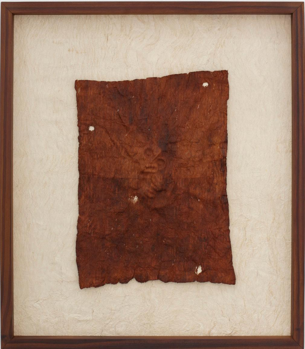 The mata present in the aute fibres (seen through the pores in the aute) look forward into the past and backward into the present, communicating the everpresent nature of Māori conceptions of vision,