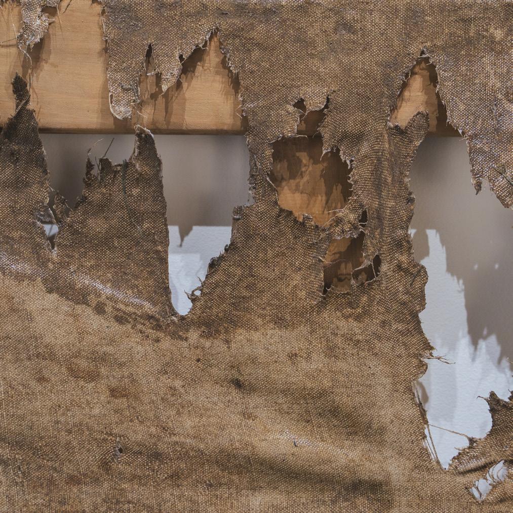 p. 94 Nat Tozer, Observations of the Ground Through Canvas (on-going) (detail), buried and unearthed canvas, 107 x 101.5 cm