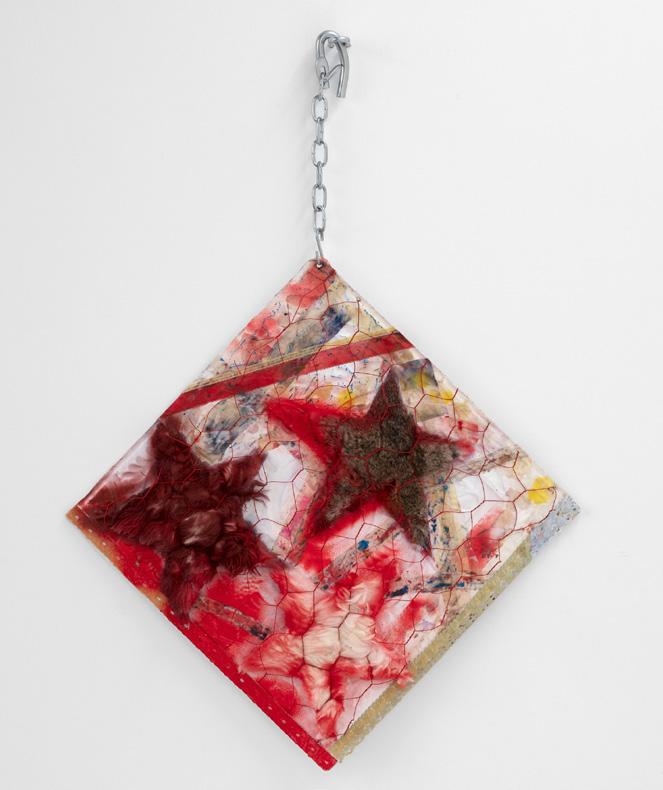p. 109 & 113 Lily McRae, 1/7, 2025, casein, pastel and silk on canvas, 140 x 140 cm. Courtesy of the artist Envy