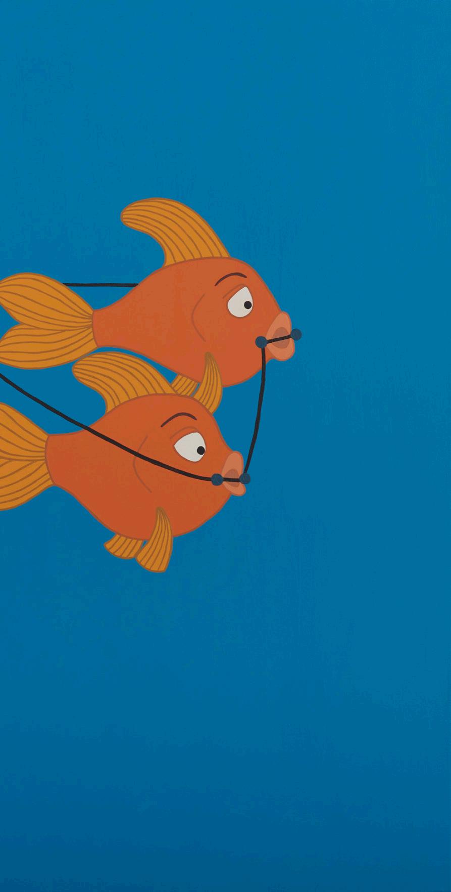 I’m staring into the vast landscape of 1/7. The calm ocean is painted with soft baby blues and hints of orange reflected from the sun which distort into a fish-eyed halo above the horizon’s edge. A cargo ship on the corner of the horizon idyls. A boy, leaning on rusting ceramic bollards is slouched, his elbows drawn in. Maybe he’s getting cold. His line of vision intersects with a silk flag pasted diagonally through the painting. It disrupts the serenity of the image—something real that disrupts the reverie. It reminds me of the white flag of surrender. Staring into McRae’s landscape, I recall hearing about how gazing at the horizon calms the nervous system— something pre-industrial humans did instinctively, before the skyline filled with high-rises. 1/7 simulates this feeling. My vision is tricked into entering the sacred beach zone where my optic nerves relax. Behind the halo of the painted sun, I conjure the outline of Rangitoto Island.