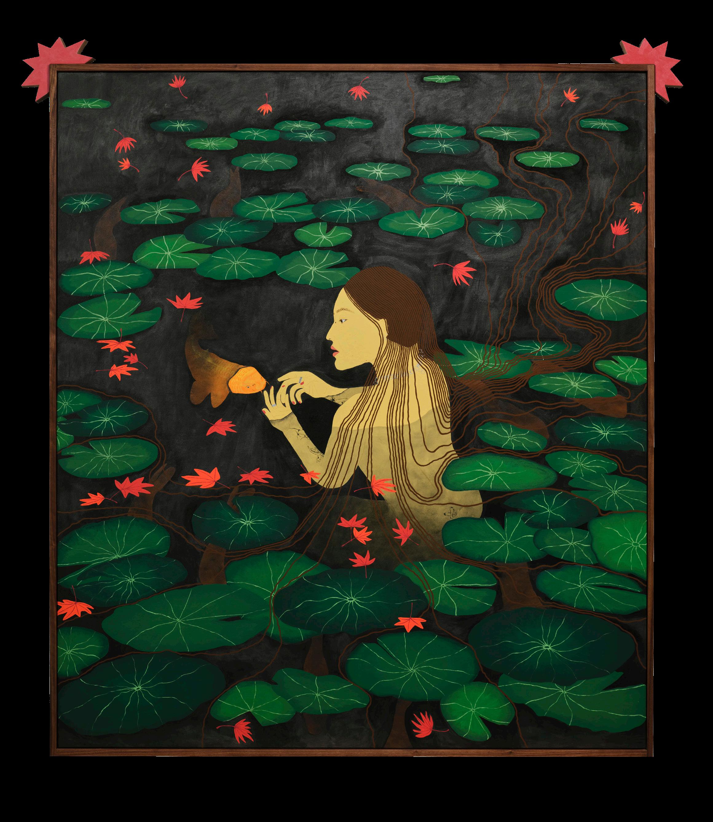p. 109 & 113 Lily McRae, 1/7, 2025, casein, pastel and silk on canvas, 140 x 140 cm. Courtesy of the artist Envy