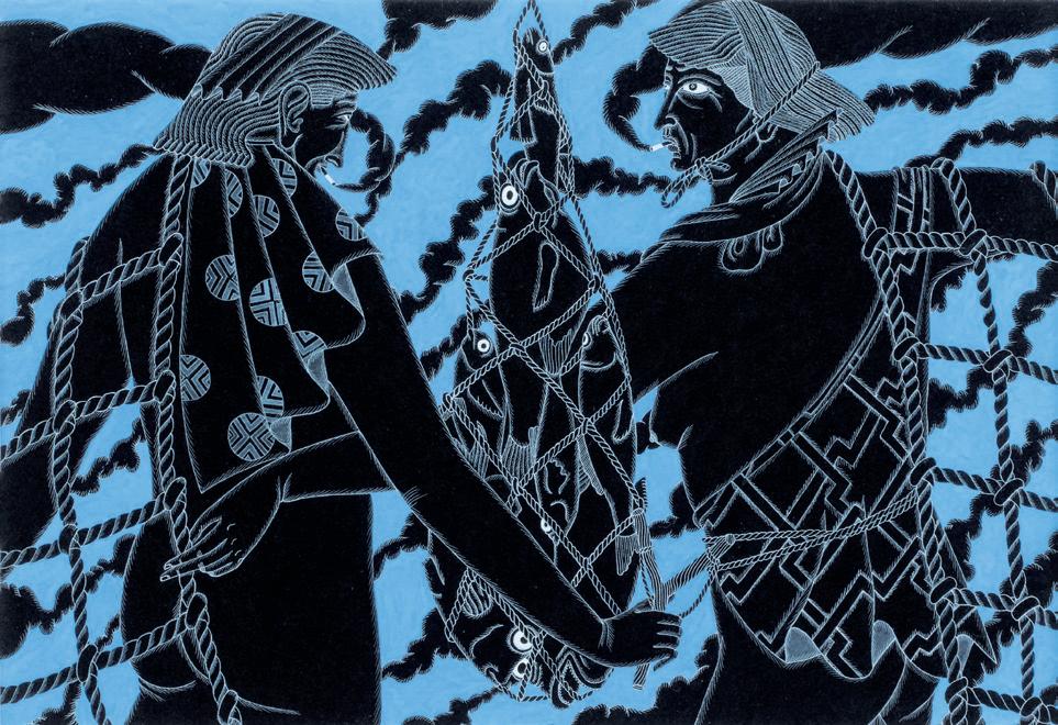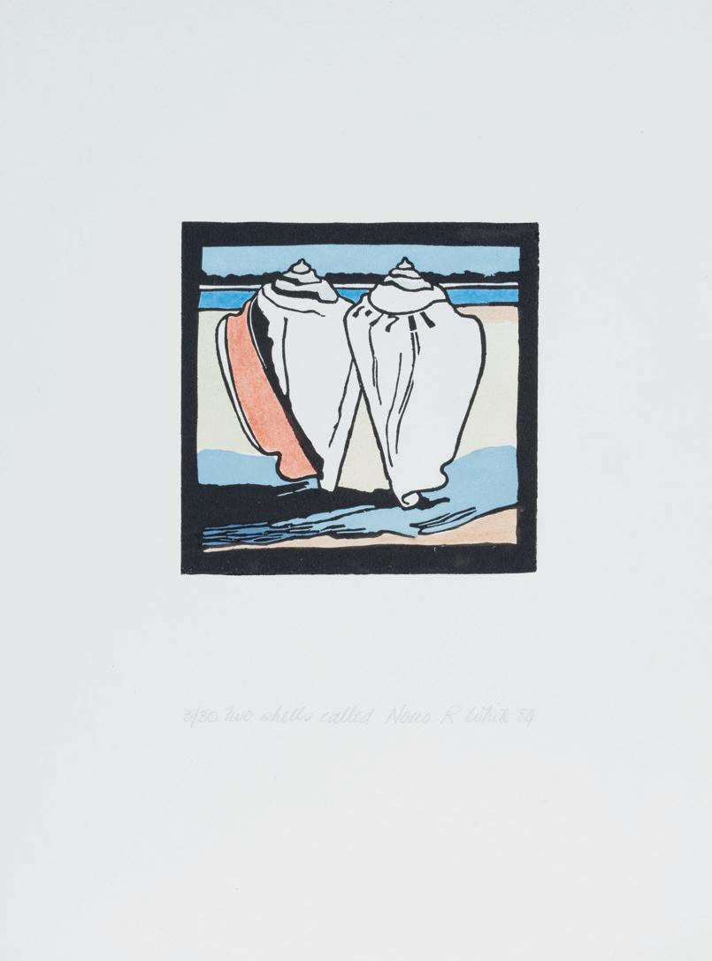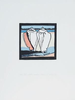 2 Robin White, Two Shells called Nouo 1984 handcoloured woodcut print on paper, 3/30 signed, dated and title inscribed 300 × 185mm