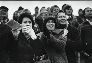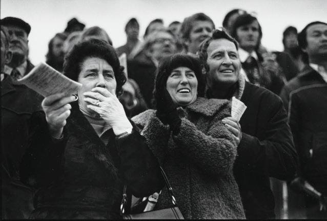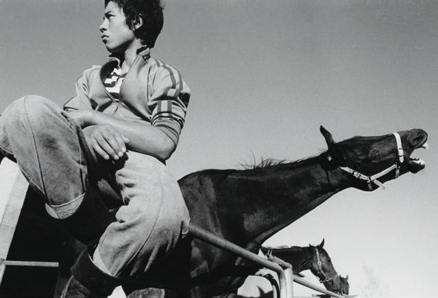Jowitt produced photographs in both black and white, and colour. The choice to use one over the other was made to convey mood and communicate a certain atmosphere. The four monochrome photographs featured in this catalogue predate his Pacificthemed, colour photographs of the 1980s and 90s. In three of the featured prints, She Devil and Baldie, Black Power (1979) and Riccarton (1978), the blackness is intentionally subfusc, to create a serious and sombre effect. Conversely, there is a more convivial mood captured in Rangiora Races (1978) and Waterloo, Blenheim (1978), from Jowitt’s Race Day series. Later in his career, rather than take images of Pacific people at work in factories or cleaning, that would show the financial realities for many living in Aotearoa, Jowitt chose to capture events and moments that celebrated an innate capacity for joy despite hardship.