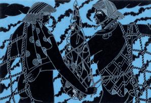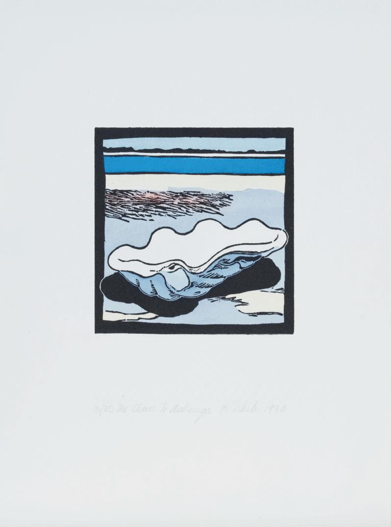 4 Robin White, The Clam 1984 handcoloured woodcut print on paper, 3/32 signed, dated and title inscribed 300 × 185mm