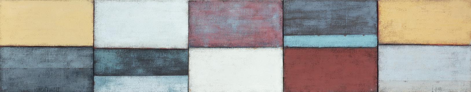 26 Stephen Bambury, Site Works Set 5 (No. 5) 1980 acrylic on canvas signed, dated and title inscribed 735 × 380mm (widest points)
