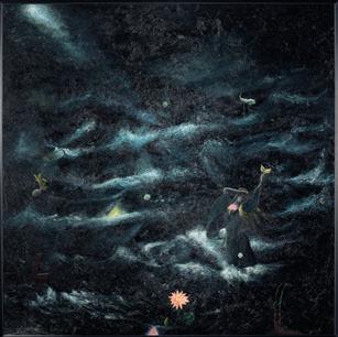 c1986 acrylic on canvas signed and title inscribed 910 × 910mm