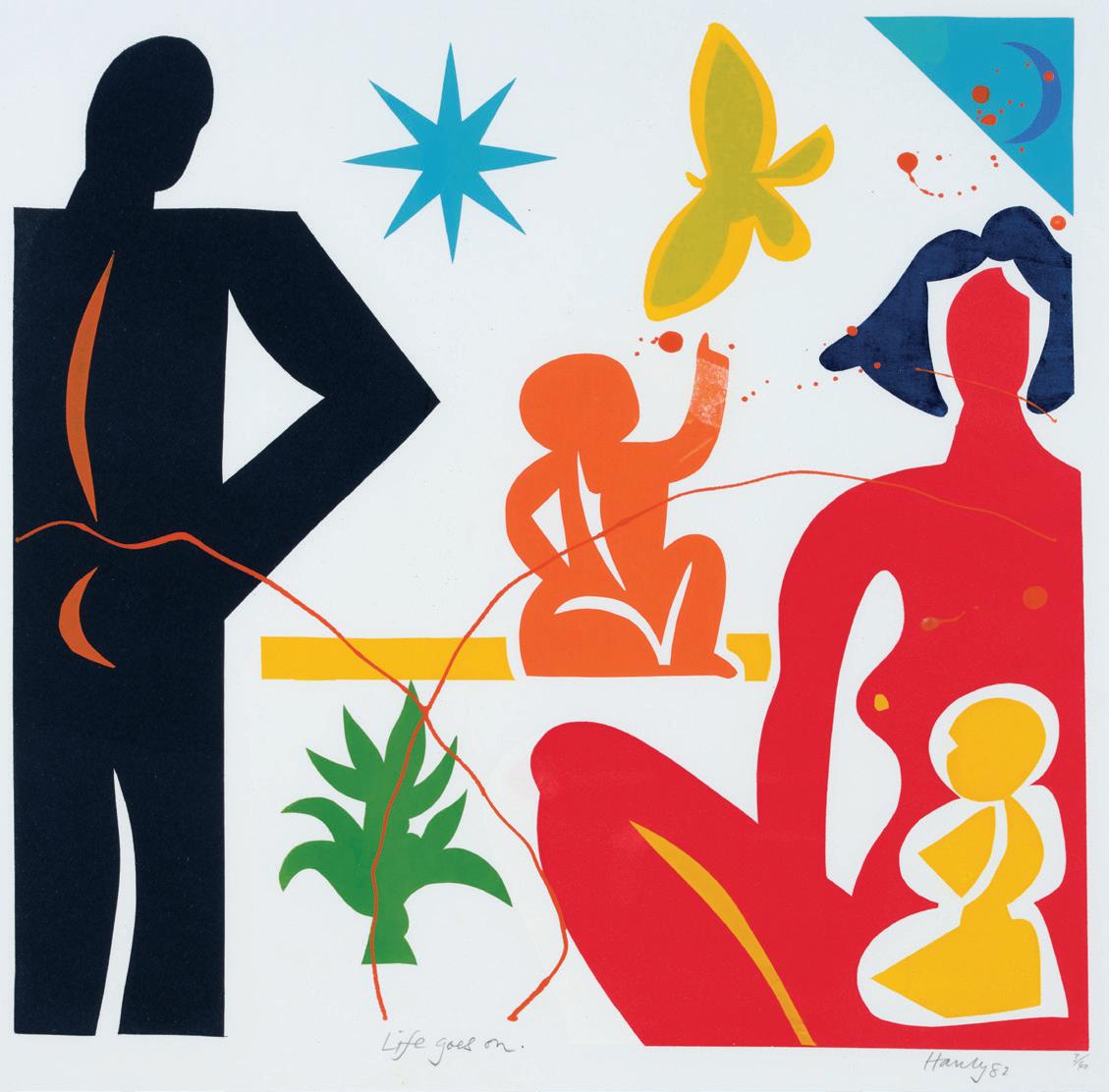 6 Pat Hanly, Life Goes On 1982 screenprint on paper, 3/40 signed, dated and title inscribed 530 × 530mm EST $3,000 — $5,000