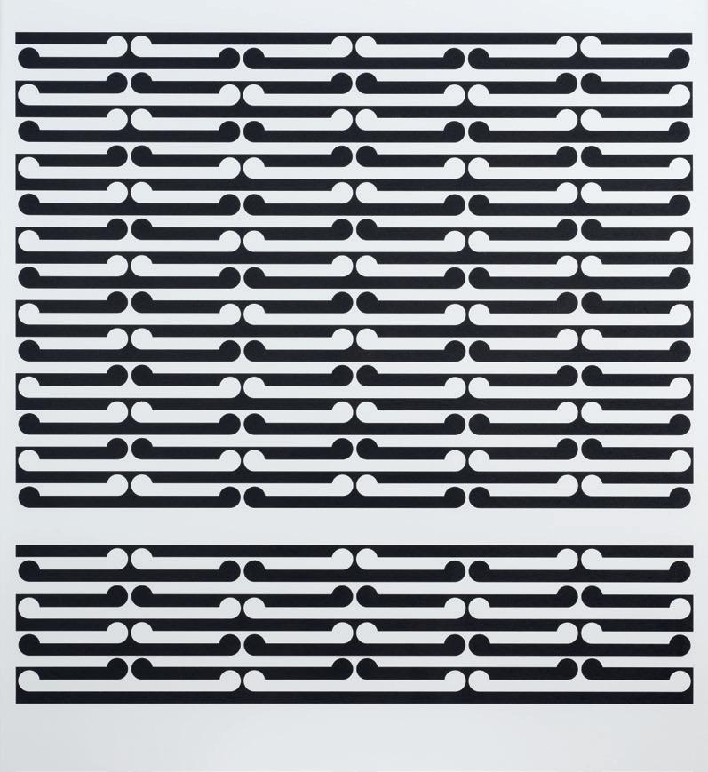 The visual influences of Mondrian’s and Noland’s clean geometric designs, van Doesburg’s field paintings, and Lichtenstein’s use of commercial tropes are clearly recognisable in Scott’s Lattice works. Scott was well aware of these practices and intentionally borrowed and incorporated aspects into his own. In the case of his Lattice paintings, appropriation is partly an act of homage. However, this motif is uniquely the artist’s own, and it served as a modus operandi for rigorous formal exploration. While the majority of works in Scott’s Lattice series were produced between 1976 and 1982, he frequently returned to the abstract motif, right up until the 1990s. Small Lattice No. 134, featured here, is a sophisticated work; it has the trademark finesse of Scott’s Lattice series — that combination of chic cool and intellectual refinement. The lattice motif is composed of interlaced diagonal bands of line and colour that come together with a striking effect, which is part of the reason that these remain covetable works of art to this day.