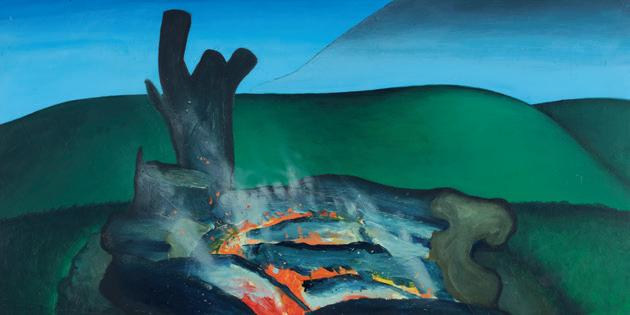 Ian Scott was a New Zealand artist who, during the course of his fifty-year career, continued to challenge local art conceptions of what constituted good taste, and what defined New Zealand art. It could be said that Scott was a bit of a punster; he frequently poked fun at the New Zealand art world in the form of cliché and parody as critical commentary. When Scott began his career, naturalistic landscape painting was the leading style in New Zealand. He naturally followed suit, and established himself as a distinguished landscape painter. However, by the late 1960s Scott began to rebel against these confines to forge a new style as he turned his focus to what was happening and current internationally in Europe and America. By the 1970s all traces of realist scene representation were gone from his work.