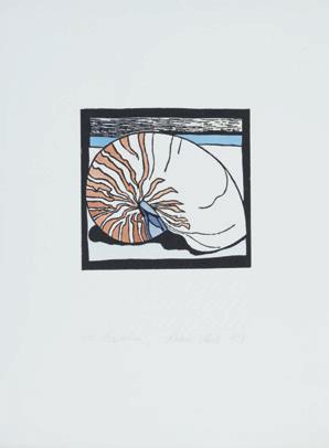 1 Robin White, Nautilus 1984 handcoloured woodcut print on paper, 3/30 signed, dated and title inscribed 300 × 185mm