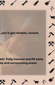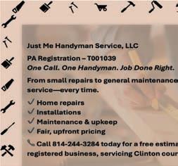 Available Upon Request. For An Estimate Call Joyce 570-238-1796. BELLAʼS SUNSHINE CLEANING SERVICES Professional Residential Cleaning From Our Shining Customer Service, To Your Sparkling Clean Home, I Clean To Meet Your Needs. Because Everyone Needs A Little Sunshine. Reasonable Rates. Call 570-435-8082. 197051