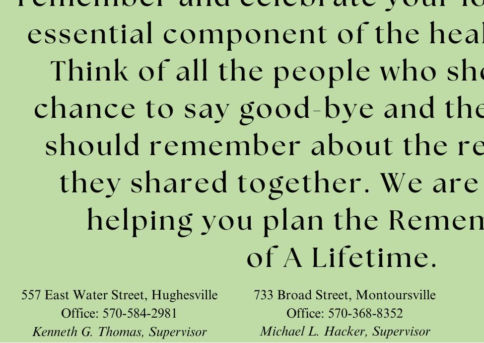 Advertising Sales Staff: Charlie Gizenski cgizenski@webbweekly.com 570-419-3334