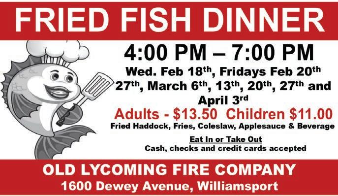 St. Joseph the Worker Parish Center, 720 West Fourth St., Williamsport Ash Wednesday, Feb. 18th Noon-5:00pm or Until Sold Out