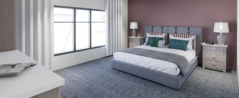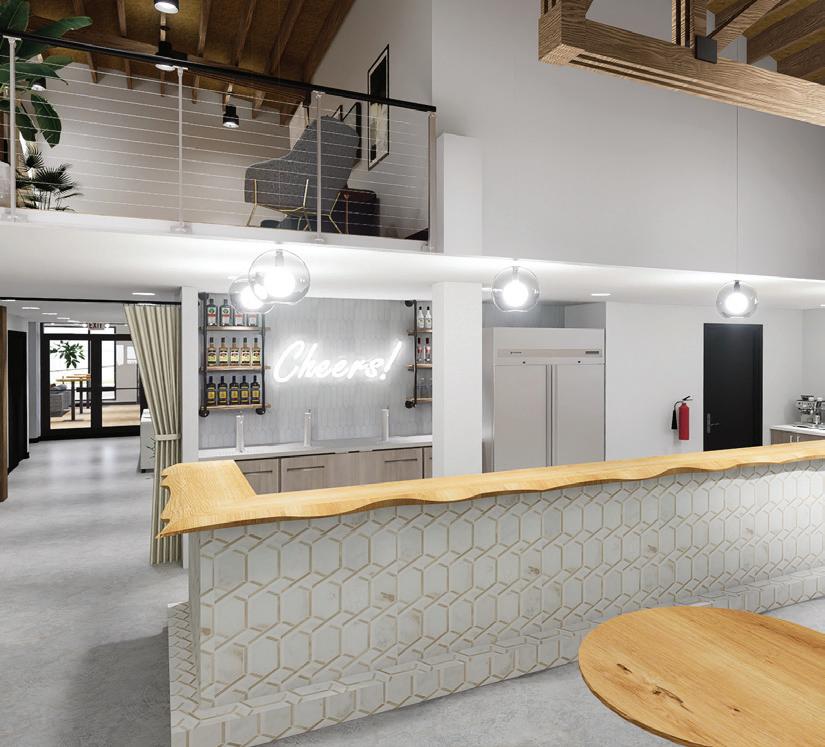The groom and his party will enjoy custom suit storage, a luxurious seating area, fireplace, serving bar with minifridge, tv and sound system, and a full-length mirror.