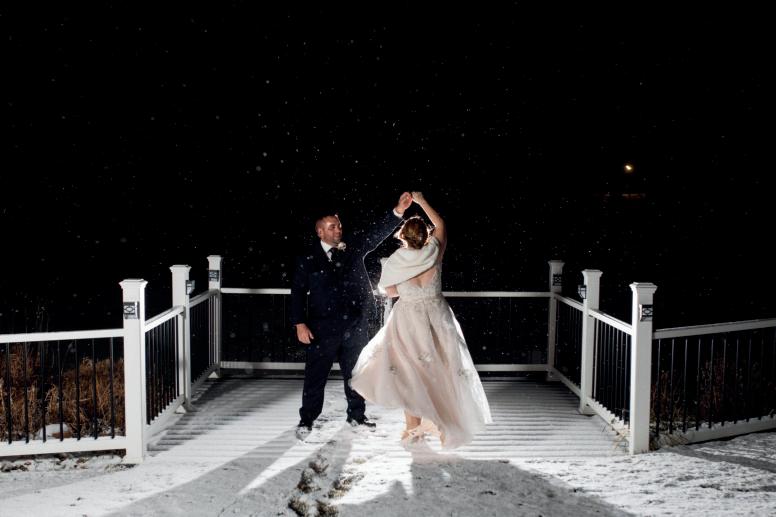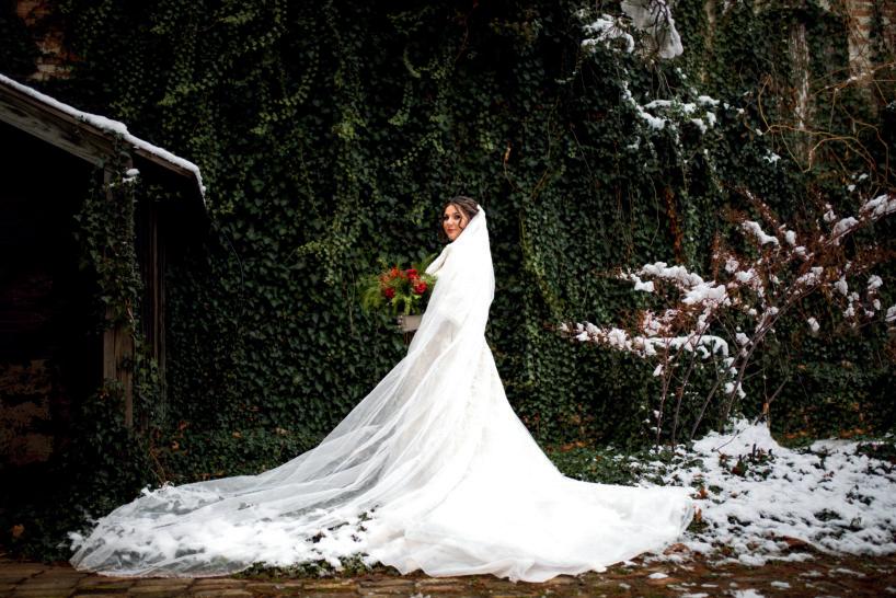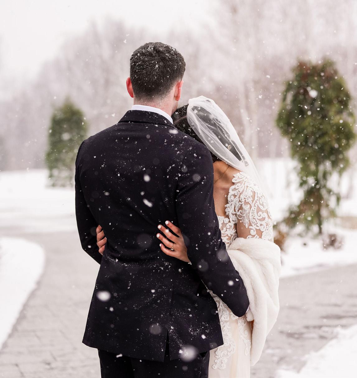 “January is just a perfect time for a winter wedding,” say the Pelhams. “When the venue and surrounding landscaping is blanketed in snow, it creates a winter wonderland feel.”