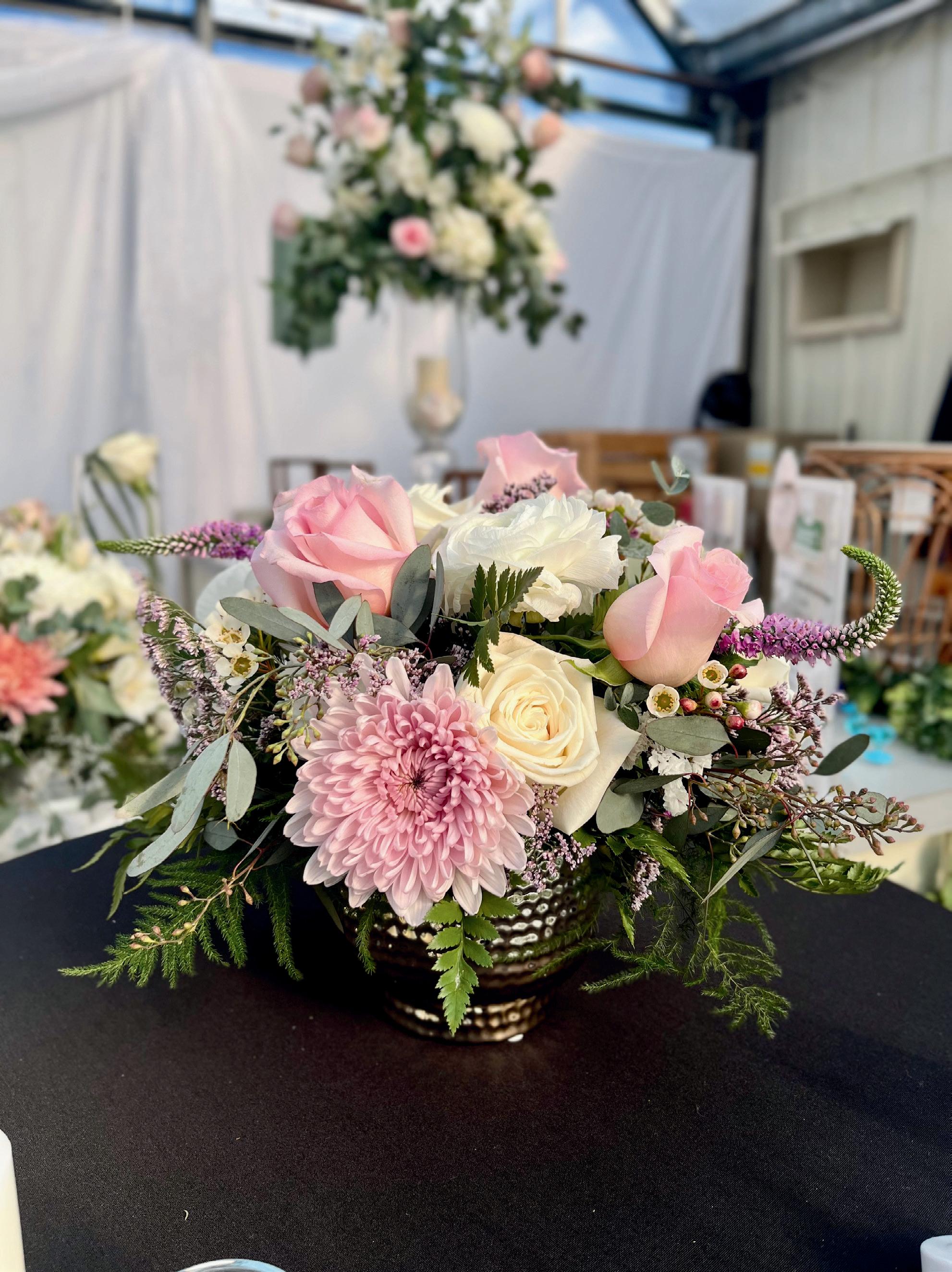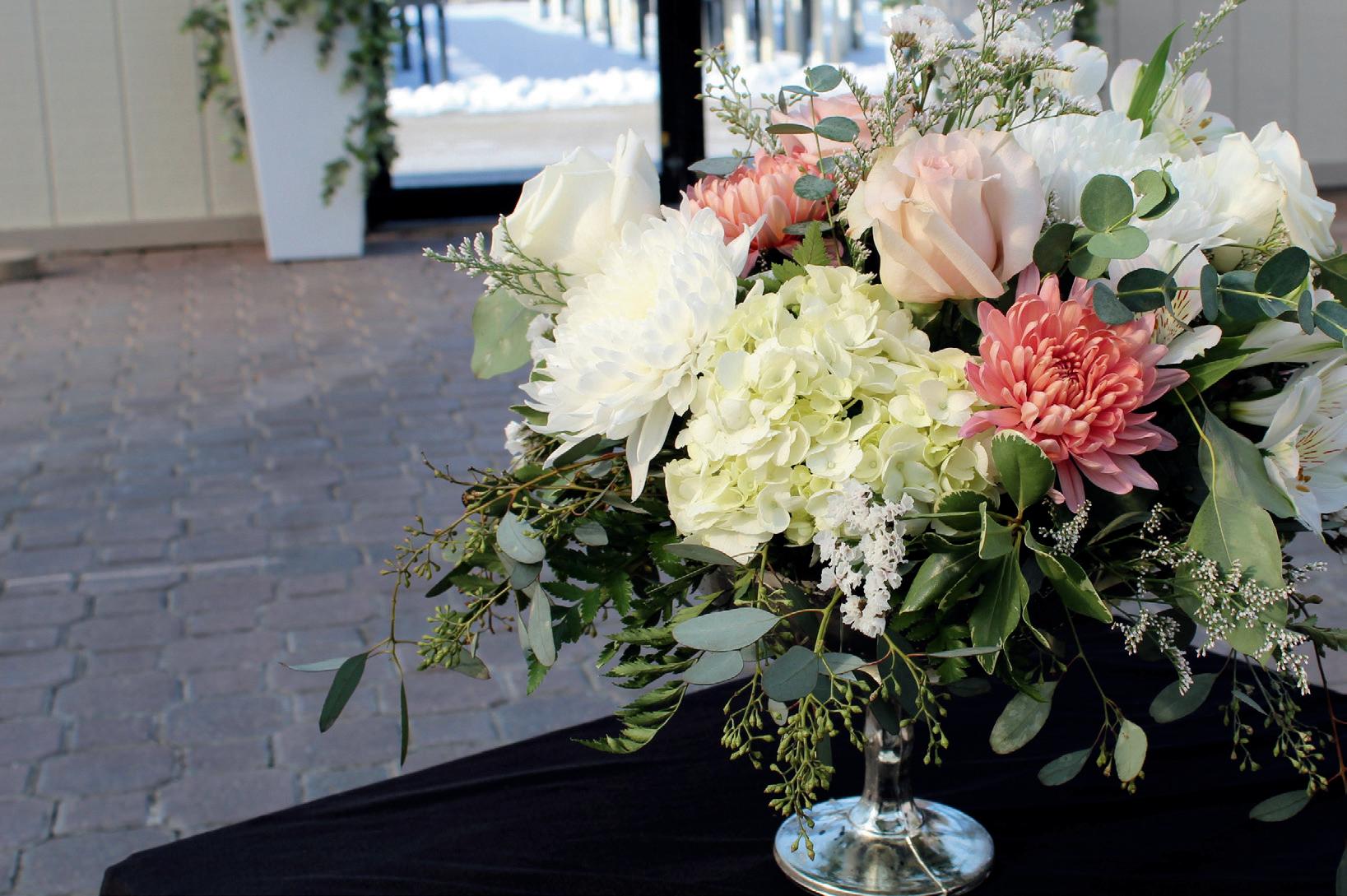 Passionate about the details and providing convenience for couples and their families on the big day, Amie ensures that the venue is well decorated year-round, so couples only have to bring in guest table centerpieces. Yet, winter weddings provide a particularly special opportunity for decorations. This winter, the venue was decorated with all neutral winter decor, including outdoor greenery planters, evergreen garland, candles, and flocked Christmas trees.