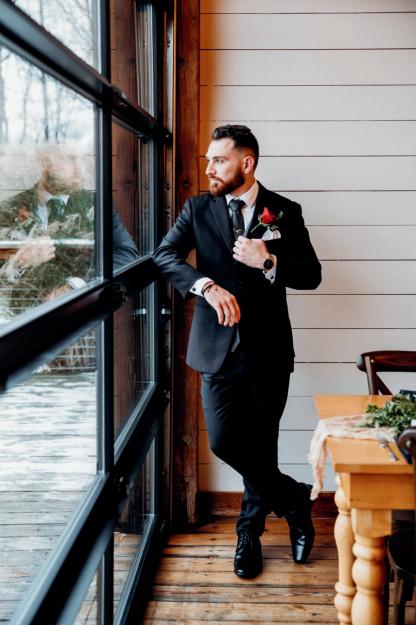 “The bridal suite is located upstairs, which makes winter weddings even more magical. The bride walks down the staircase before making her way down the aisle, creating a truly breathtaking moment,” they say. “In fact, during venue tours, we often see brides get emotional imagining the bridal suite barn doors slide open and their grand entrance down the stairs.”