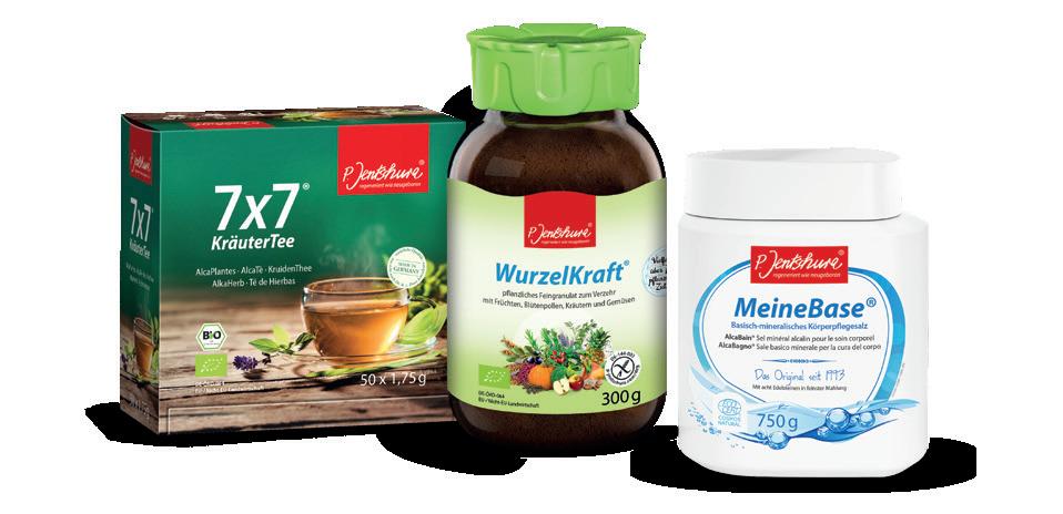 7x7® KräuterTee – der geniale Basentee mit 49 Kräutern WurzelKraft® – das Naturlebensmittel aus mehr als 100 pflanzlichen Zutaten MeineBase® – das Original unter den Basenbädern mit pH 8,5