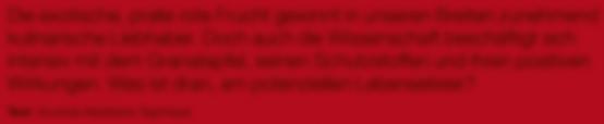 Der Granatapfel, Symbol für Unsterblichkeit, Fruchtbarkeit und Sinnlichkeit, soll Alterungsprozessen entgegenwirken: Zellen schützen, Frauen bei Wechseljahrbeschwerden und Männern bei Prostatakrebs helfen. Der Granatapfel, ein wiederentdecktes Lebenselixier? Möchte man bei Herstellern von Mitteln und Kosmetika aus Granatäpfeln jedoch Genaueres über die Wirksamkeit des Radikalfängers erfahren, zeigt man sich wenig auskunftsfreudig. Studien und Untersuchungen werden wie Firmengeheimnisse behandelt. Zudem sind sie ohnehin mit Vorsicht zu lesen, wird die Forschung doch oft im Auftrag eines Kosmetik und Medikamentenherstellers gemacht. Zwar attestieren Studien den sekundären Pflanzenstoffen des Granatapfels eine potente Wirkung als Rostschutz für die Zellen. Doch weisen andere unabhängige Versuche auch darauf hin, dass längst
