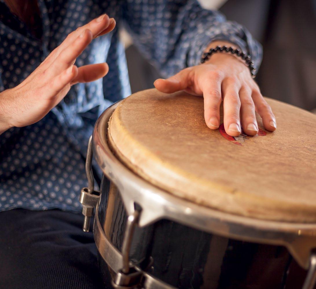 Für die musikalische Arbeit steht eine breite Auswahl von leicht spielbaren Musik- und Rhythmusinstrumenten aus verschiedenen Ländern und Kulturen zur Verfügung. Im Gegensatz zum gewohnten «Musizieren» steht nicht das musikalische «Produkt» im Zentrum, sondern was die Musik beim Menschen auslöst: Was begegnet mir über und durch die Musik? Welche Ge-