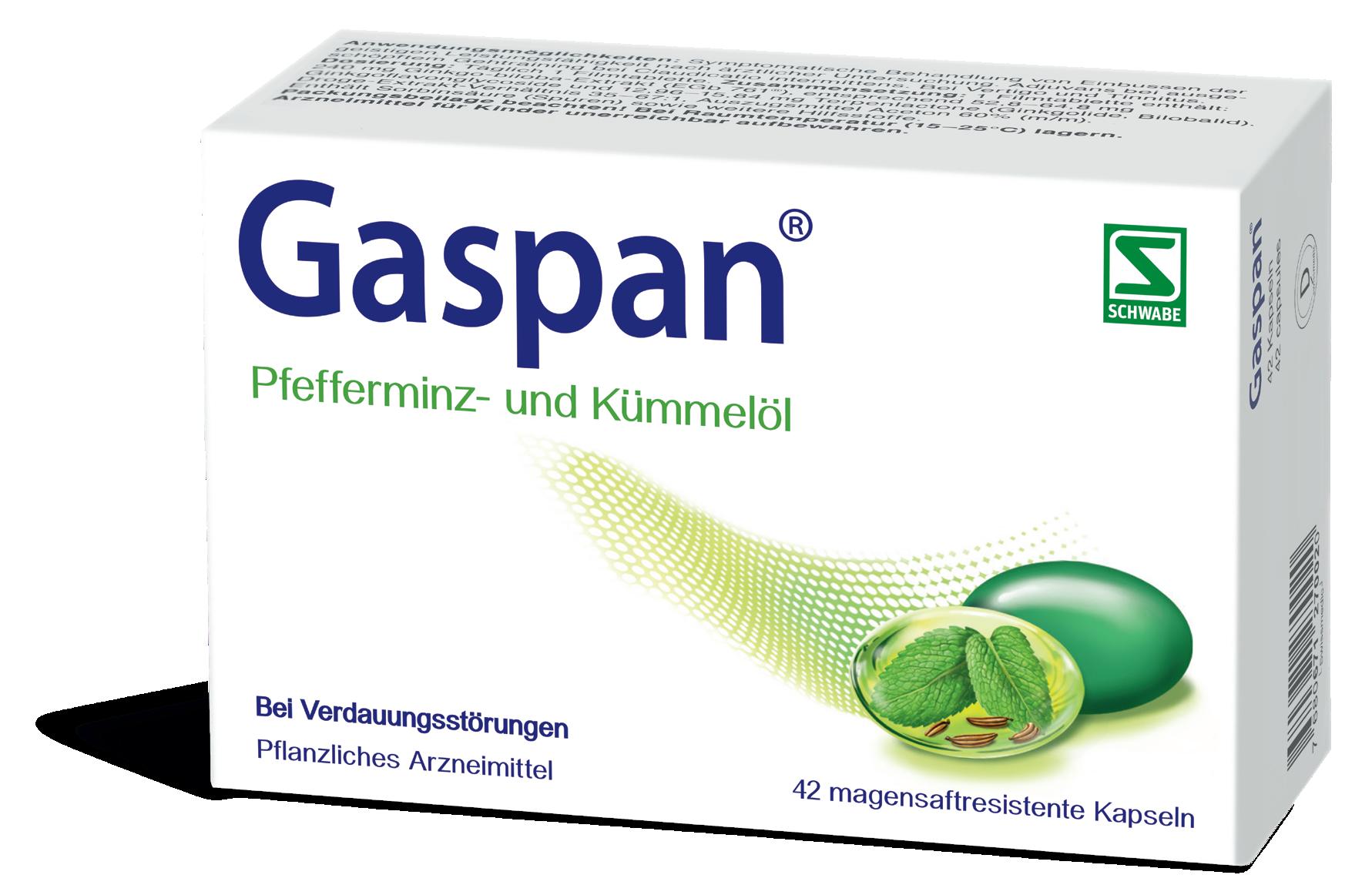 Gaspan® – bei Blähungen, Druck- und Völlegefühl in der Bauchgegend mit leichten Krämpfen.