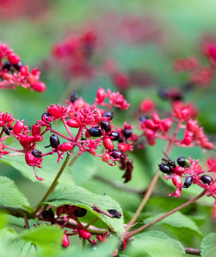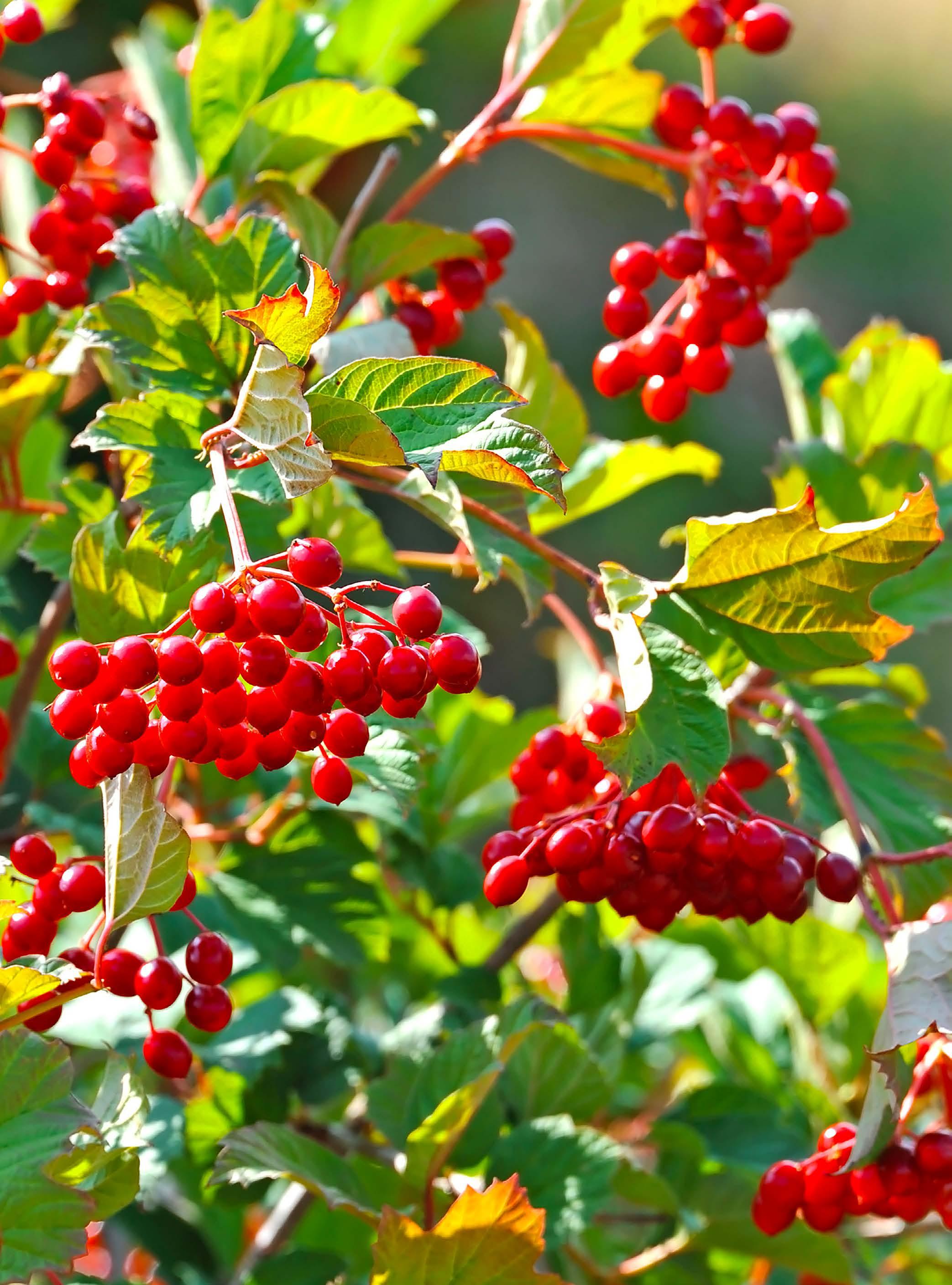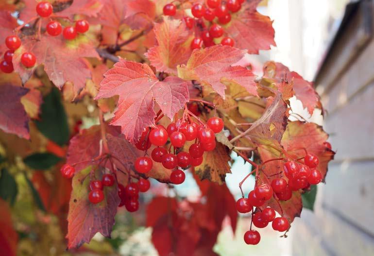 70 Herbstspektakel Viburnum bietet uns ein farbiges Herbstspektakel.