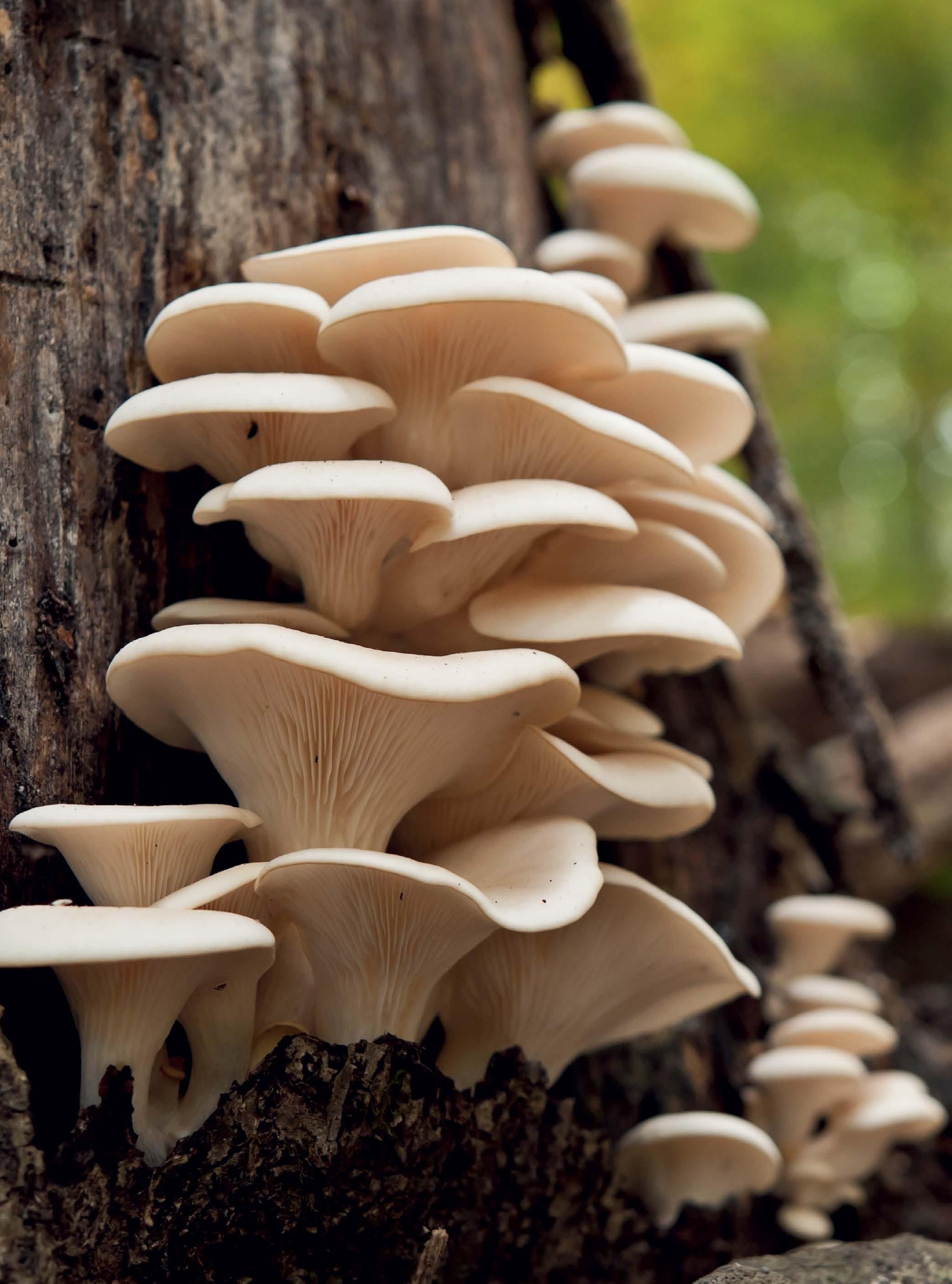 Im Herbst ist wieder Pilzzeit! Nein, stimmt gar nicht. Das ganze Jahr über ist Pilzzeit, man muss nur wissen, von welchem Pilz. Die Totentrompete ist einer der klassischen Herbstpilze, der Austernseitling aber beispielsweise wächst vom Spätherbst bis in den Januar und den Februar hinein – und wenn er drinnen kultiviert wird, dann natürlich ganzjährig. Der Maipilz ist, wie der Name bereits andeutet, ein Frühlingspilz, der von Mitte April bis Anfang Mai zu finden ist. Ab Juli findet sich dann der Fichtensteinpilz, auch unter dem gängigeren Namen «Steinpilz» bekannt. Aber da er als Mykorrhizapilz von Buchen und vor allem Fichten bekannt ist, hat er diesen Zweitnamen erhalten.