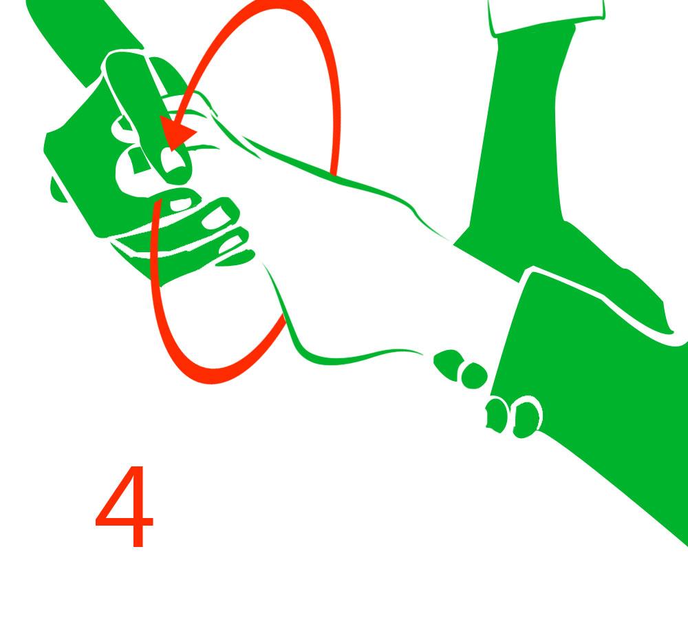 der rechten Hand mehrere Male ganz leicht und langsam zu kreisen, zuerst im Uhrzeigersinn, danach im Gegenuhrzeigersinn (Abbildung 1)