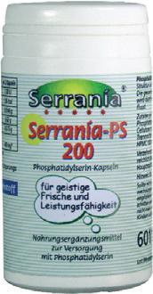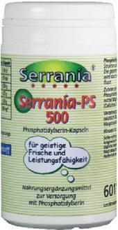 Schlüssel verlegt, Brille unauffindbar, Telefonnummern, Namen, Termine… es scheint, als liesse einen das Gedächtnis immer mehr im Stich. Niemand muss dies als gegeben hinnehmen, es hat auch nichts mit dem Alter zu tun. Das Serrania Phosphatidylserin (PS) ist die Basis für ein gut funktionierendes Gehirn. Es kann Hilfe bei chronischen Depressionen bieten und bei Stressbewältigung. Belebt Geist und Sinne. Endlich kommt wieder Lust und Freude am Leben und Erleben. Mit zunehmendem Alter ist der Körper nicht mehr in der Lage, ausreichende Mengen der so wichtigen Phosphatidylserine (PS) zu produzieren. Das Serrania-PS ist deshalb eine wichtige Nahrungsergänzung. Zumeist genügen als tägliche Ergänzung 200 mg Phosphatidylserin (PS). In Stress-Situationen, bei Konzentrationsschwäche oder bei beginnender Gedächtnisschwäche können vorübergehend (ca. 4 Wochen) täglich 2 Kapseln à 500mg Serania PS eingenommen werden.