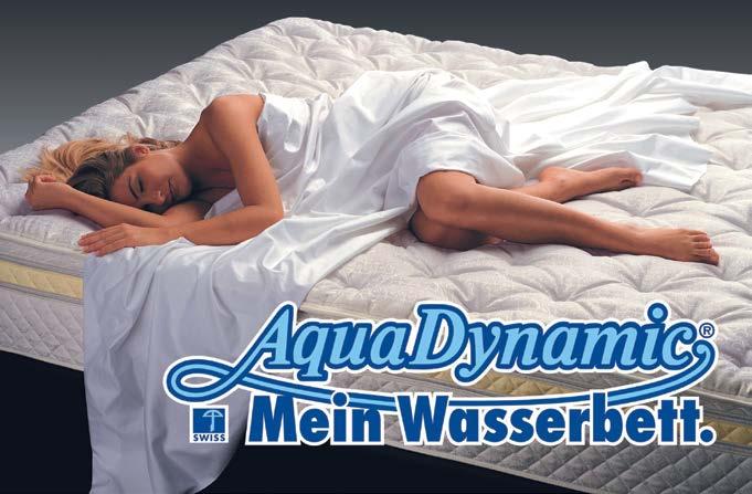 Aqua Dynamic Schweizer Qualitäts-Wasserbetten, die Nummer 1 seit 1982, zeichnen sich aus durch ideales Bettklima sowie unübertroffene Körperanpassung ohne Druckstellen. Ideal für die perfekte Abstützung der Wirbelsäule und damit weniger Rückenschmerzen. Neu auch mit RoyalStabilsierung. Wasserbetten sind gewärmt und ungewärmt erhältlich. Es handelt sich um ein freistehendes Wasserbett (Einerbett) inkl.Lieferung und Montage. www.wasserbett.ch