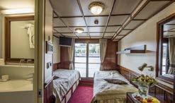 Das gemütliche Mittelk lasseschiff wurde ab 2013 laufend renovier t. Es bietet 86 Gästen in 46 Kabinen bequem Platz. Alle Kabinen (2-Bettk abine ca. 10 m², Einzelk abine ca. 8 m²) liegen aussen und verfügen über Dusche/WC, Föhn, Safe, TV sowie regulierbare Lüftung mit zentral gesteuer ter Heizung/K limaanlage Die im Design unserer Burma-Schiffe gestalteten Kabinen haben auf dem Oberdeck französische Balkone und auf dem Hauptdeck nicht zu öffnende Fenster Gutbürgerliche, nationale und internationale Speisen werden im Restaurant mit Bar ser vier t. Bequemen Aufenthalt bieten die kleine Lounge bei der Réception sowie der Panorama-Salon auf dem Oberdeck . Das grosse Sonnendeck mit Stühlen und Liegen lädt ein zum Erholen und Entspannen während der eindrucksvollen Fahr t entlang der Moldau und der Elbe Gratis WLAN nach Verfügbarkeit Nichtraucherschiff (R auchen auf dem Sonnendeck erlaubt).