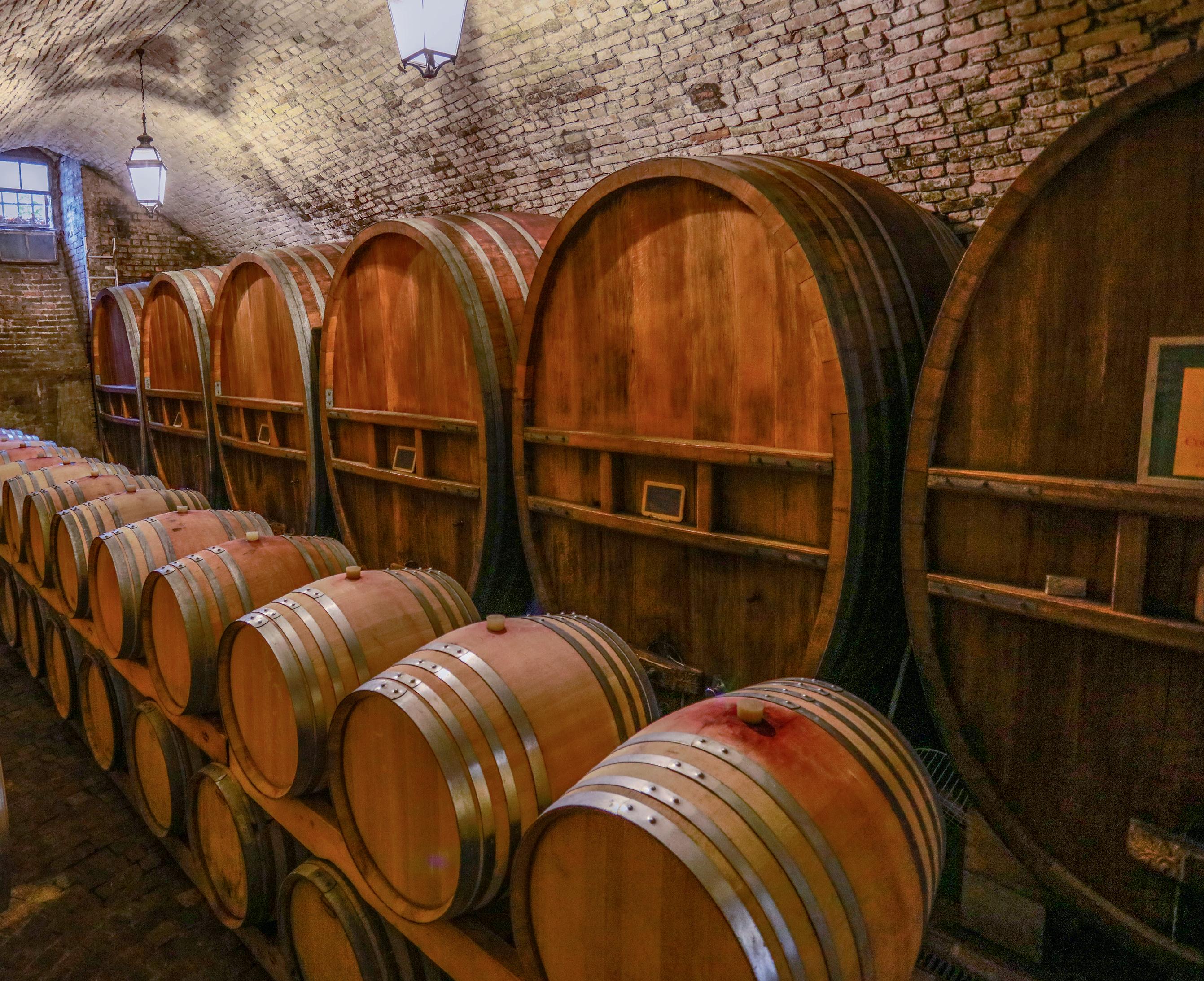 Im Keller von Château de Vufflens. Grosse Foudres und französische Barriques.