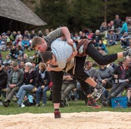Erleben Sie am Ballenberg-Schwinget wie die kräftigen Sportler nach allen Regeln des Hosenlupfs kämpfen.