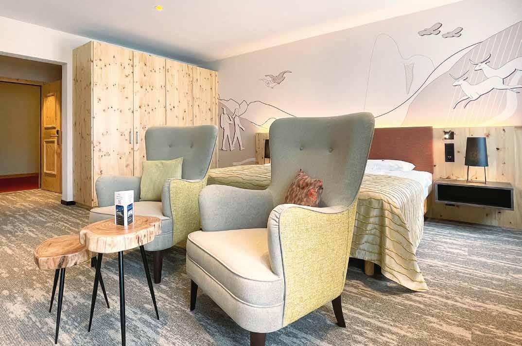 Von der Natur inspiriert, mit einer lichtdurchlässige Lärchenwand: Die Alpenchic Zimmer.