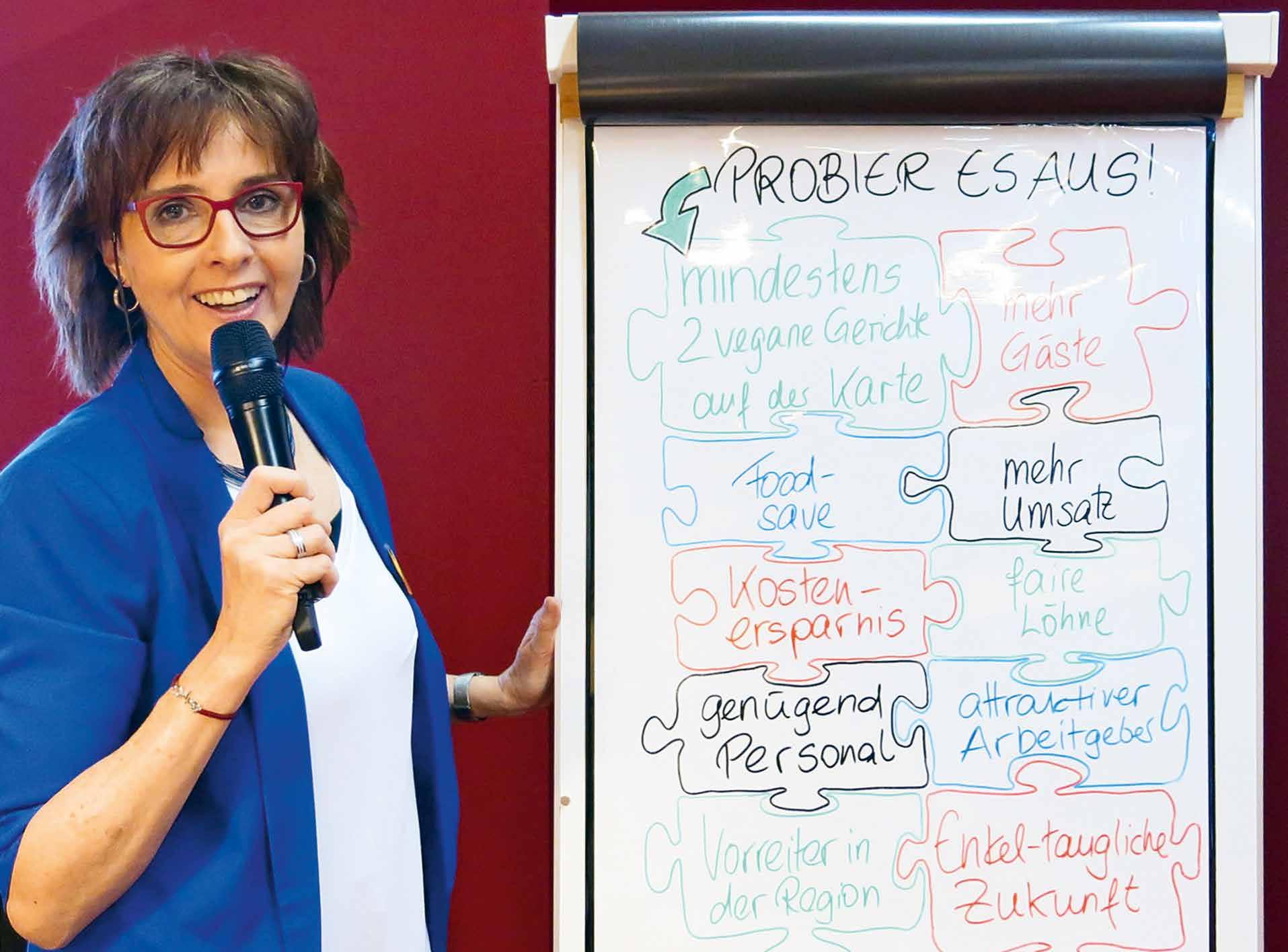 Die gebürtige Rheintalerin arbeitete zehn Jahre als Lehrerin und weitere zehn Jahre als Journalistin, Texterin und Buchautorin mit eigener Agentur in Liechtenstein. Dann baute sie zusammen mit ihrem Mann Marc, Inhaber der Firma Trauffer Holzspielwaren und erfolgreicher Mundart-Popsänger, das Trauffer Bretterhotel auf. Die faszinierende, von Brigitte Trauffer geführte Erlebniswelt umfasst neben dem Hotel zwei Restaurants, einen Eventbereich, einen Shop und als Herzstück das Kuhniversum. Mittlerweile beschäftigt das Berner Oberländer Unternehmen hundertfünfzig Leute. Quereinsteigerin Brigitte Trauffer bezeichnet sich weder als Hotelière noch als Gastronomin, sondern als Gastgeberin. Das Wichtigste ist für sie, Gäste glücklich zu machen und zu überraschen. Mit neuen Ideen, eigenem Stil und unkonventionellen Details in allen Bereichen.