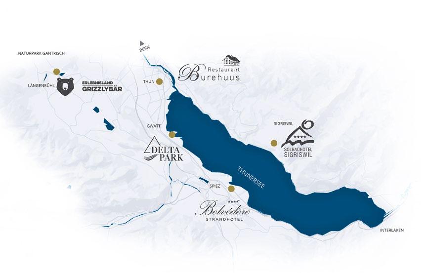 Das Magazin «Thun exklusiv» erscheint 2× jährlich (Mai und Oktober). Herausgeberin: Weber Verlag AG, Gwattstrasse 144, 3645 Thun/Gwatt, weberverlag.ch in Zusammenarbeit mit THUNcity, dem Vorstandsmitglied Simon Sutter, thuncity.ch. Projektleitung: Annette Weber-Hadorn, Dyami Häfliger, Inserate: Fabienne Righetti, Redaktion: David Heinen, Lektorat und Übersetzung: Blanca Bürgisser, Alain Diezig, Korrektorat: Laura Spielmann, Bildbearbeitung: Adrian Aellig, Layout und Grafik: Erina Zbinden, Lorena Hadorn und Sonja Berger. Bildnachweise: Patrick Liechti, zvg, THUNcity, Weber Verlag, iStock, AdobeStock. Druck: AVD Goldach, Auflage 25 000 Exemplare.